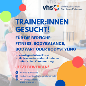 Wir freuen uns, Ihnen als Trägerverbund der Volkshochschulen Puchheim und Eichenau die ganze Bandbreite an spannenden Seminaren und Veranstaltungen in den beiden Kommunen präsentieren zu können!